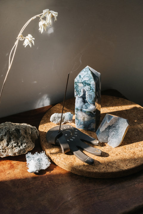 SIDERITE, MERCEDES BENZ CALCITE WITH BLACK FLUORITE